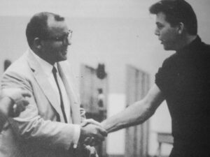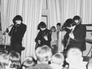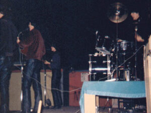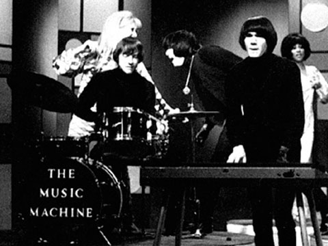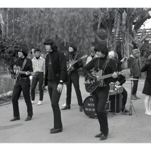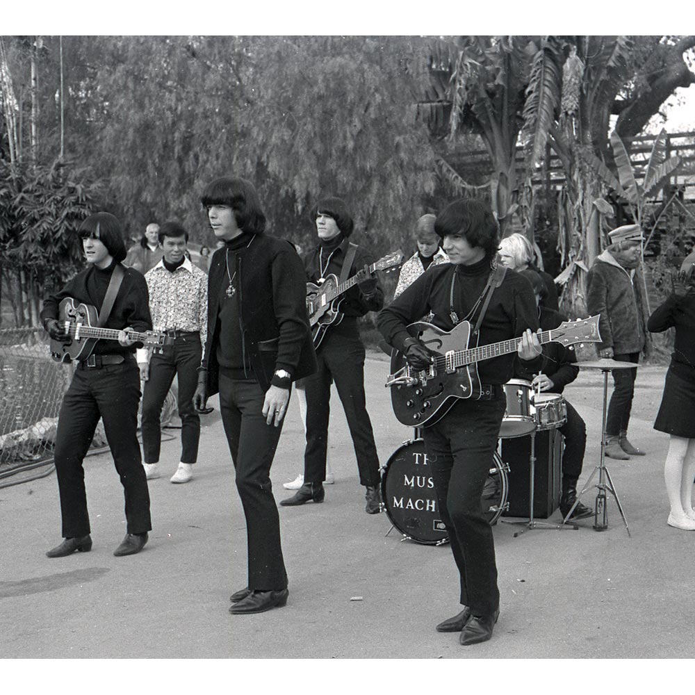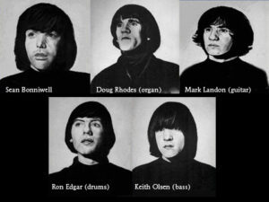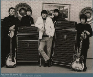 The Music Machine on Everette, Washington. Sept. 1966. Sean’s note: “This tour had us chasing ‘The Buckinghams’ and ‘Paul Revere & the Raiders’ through Northern California, Oregon, and Washington. Ron’s elderly relatives took the picture. His grandmother suggested we paint the blanket and the mop handle black before the next gig.”